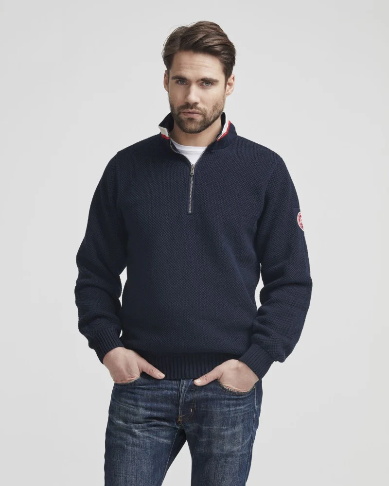 Classic knitted windproof sweater from Holebrook for men made with 100% cotton which is windproof and highly breathable featuring structure knit and T-neck with zipper in a regular fit. One of the most popular styles in our range of knited windproof sweaters range.