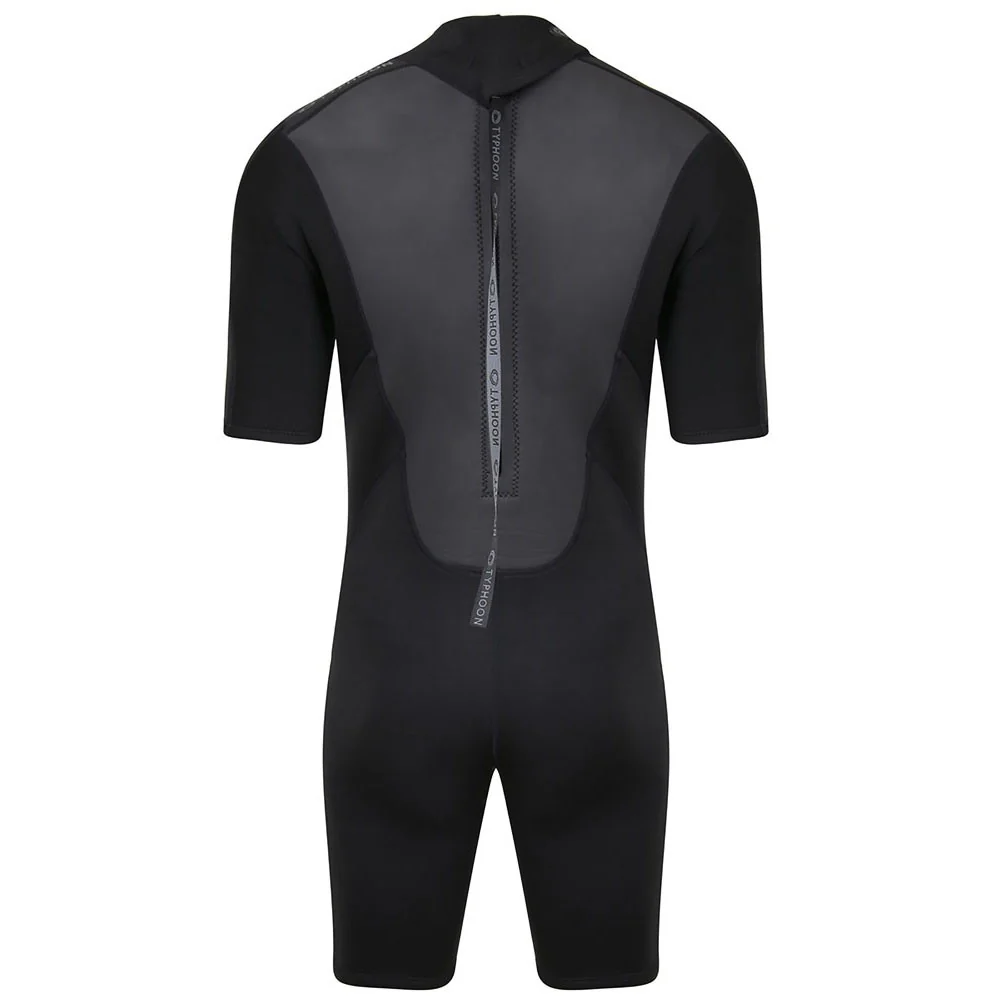 Typhoon's Storm 3mm back entry shorty mens wetsuit will keep you protected during all of your water activities and spend the day on the beach. With a smooth skin mesh front and back panels, flatlock seam construction, YKK® back entry zip system, glide seals at neck to reduce any unwanted wind cold drafts and ergonomic design for ease in movement this suit is perfect no matter what task lies ahead of you.